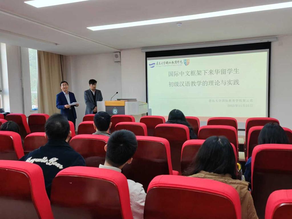 为进一步加强内涵建设,提升国际中文教学质量,全面推进留学生教学工作高质量发展,11月25日上午,太阳成城集团tyc234cc在健行楼215报告厅举办教学能力提升专题讲座。本次讲座特邀青岛大学太阳成城集团tyc234cc副院长崔云忠,以《国际中文教学途径与方法探究》为题进行分享,全体国际中文授课教师参与学习。